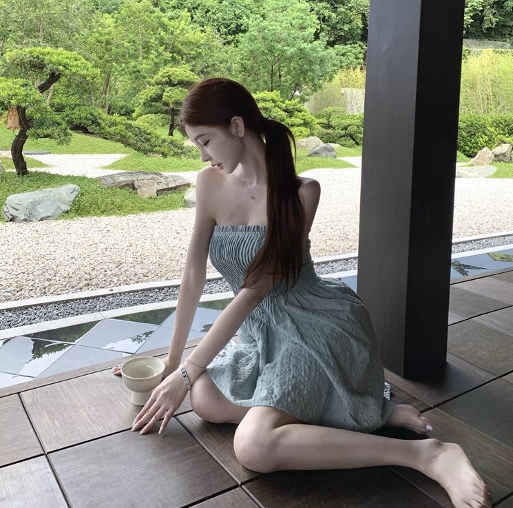 韩雨嘉【海盐气泡水】重工抹胸刺绣短裙女纯欲设计感小伞摆连衣裙