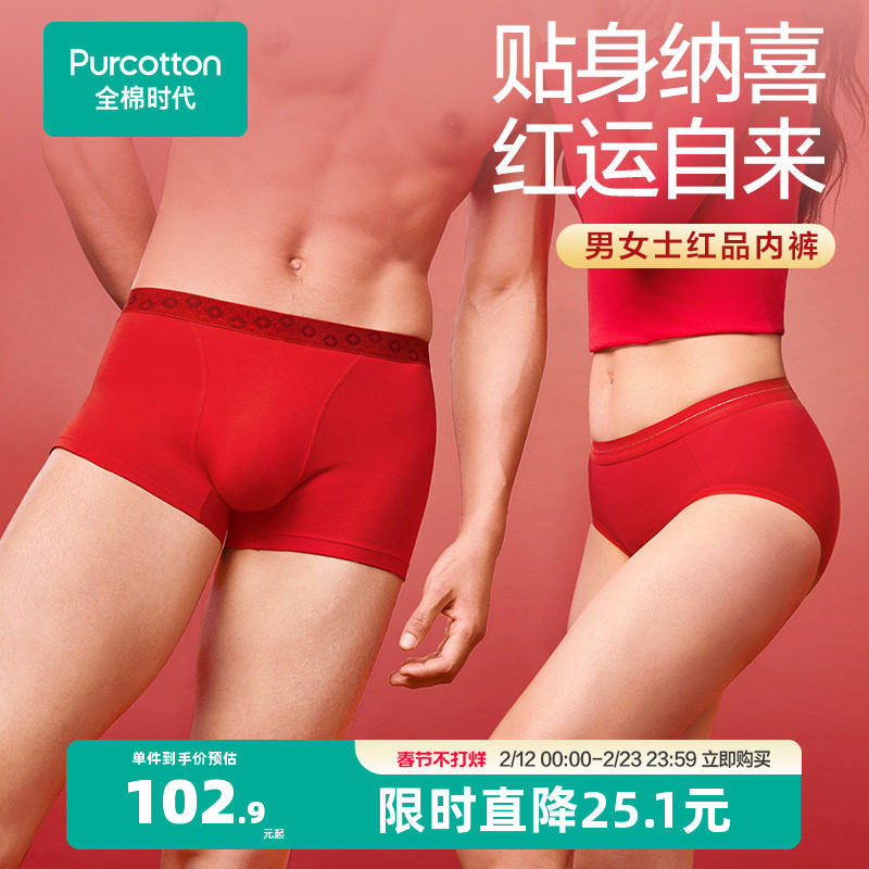 全棉时代红色内裤马年本命年男女士内裤内裤情侣款纯棉结婚新年