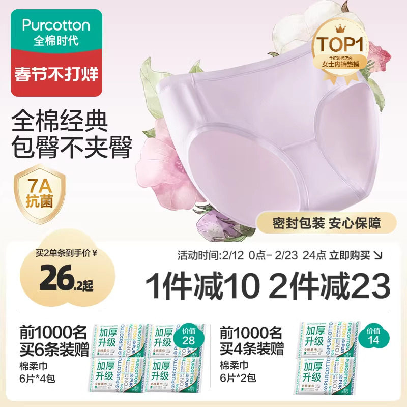全棉时代内裤女士纯棉柔软亲肤中腰收腹抗菌经典无痕内裤