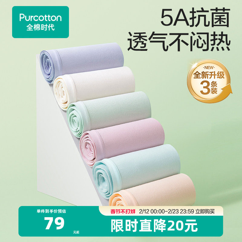 全棉时代内裤女纯棉抗菌女士内裤三角裤包臀透气3条装裤头女生