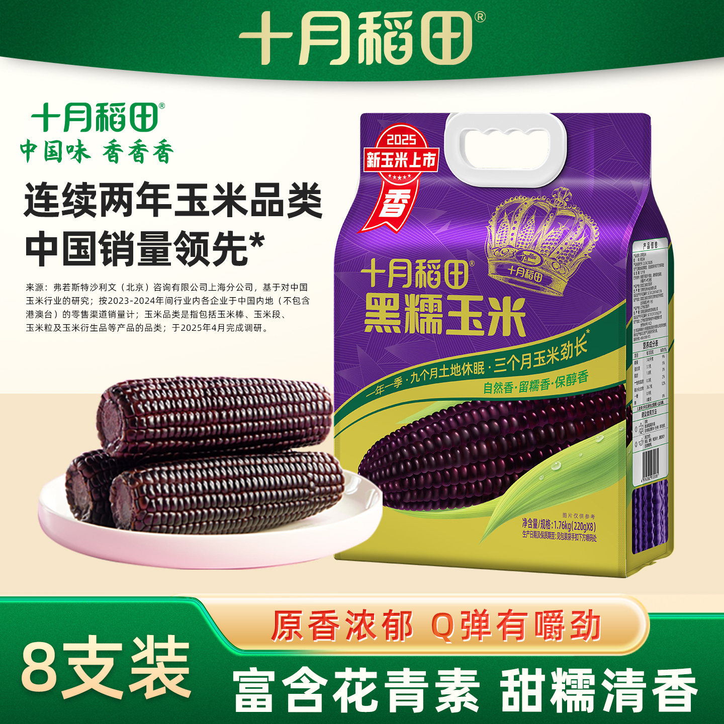 十月稻田黑糯玉米220gx8根黄糯白糯大棒东北苞米粘糯新鲜官方真空