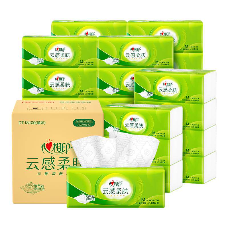 心相印抽纸云感柔肤纸巾卫生纸实惠装餐巾纸家用面巾纸囤货整箱装