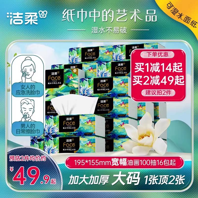 洁柔艺术油画抽纸纸巾大尺寸卫生纸餐巾纸宽幅家用擦手纸面巾纸