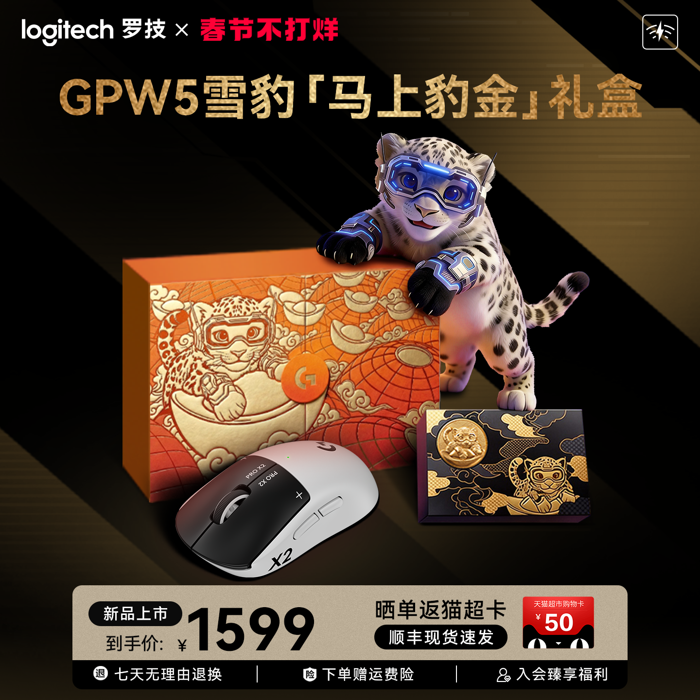 【顺丰现货速发】罗技gpw5代雪豹 马上豹金礼盒电竞游戏鼠标台式