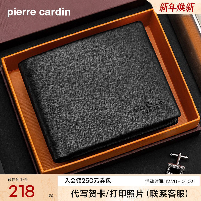 【羊皮】皮尔卡丹男士钱包短款头层羊皮商务皮夹子真皮钱票夹新款