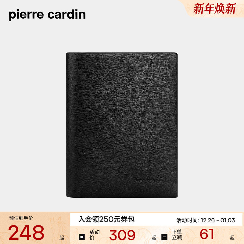 【真皮】皮尔卡丹竖版男士钱包短款卡包简约男式钱夹牛皮男生皮夹