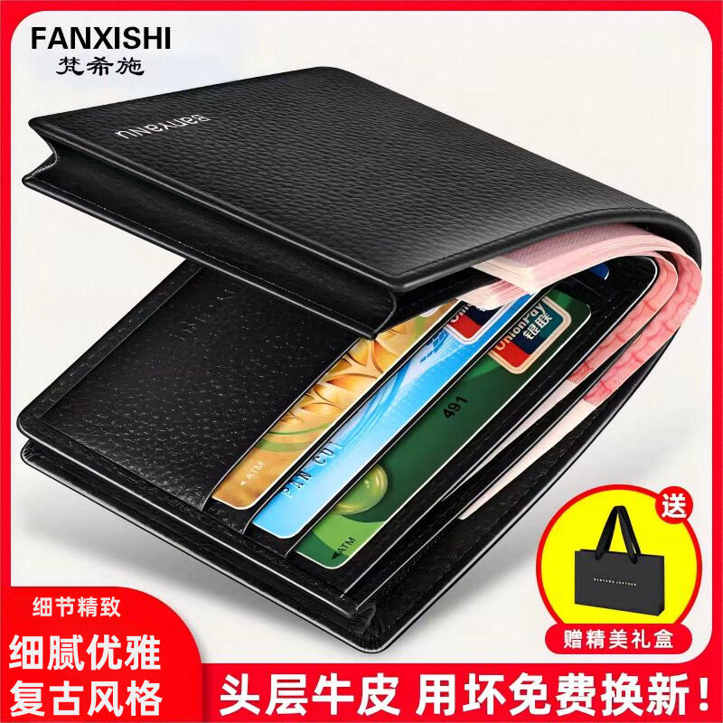 男士钱包真皮短款简约钱夹2025新款头层牛皮青年横款皮夹潮牌礼物