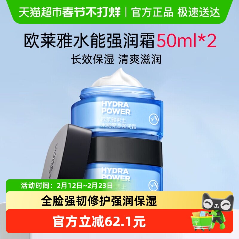 欧莱雅男士面霜秋冬补水保湿滋润乳液擦脸油水能保湿强润霜50ml*2