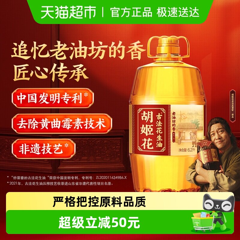 胡姬花古法一九一八花生油6.2L*1桶食用油家庭桶装醇香