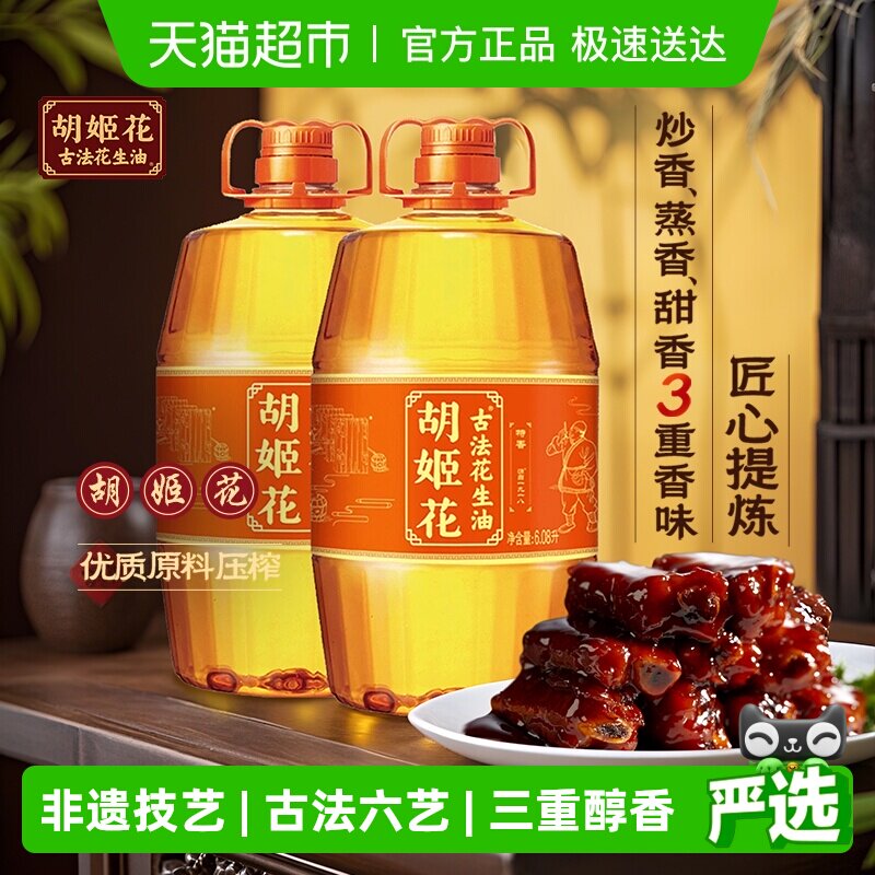 胡姬花古法花生油6.08L*2桶食用油压榨 大桶装