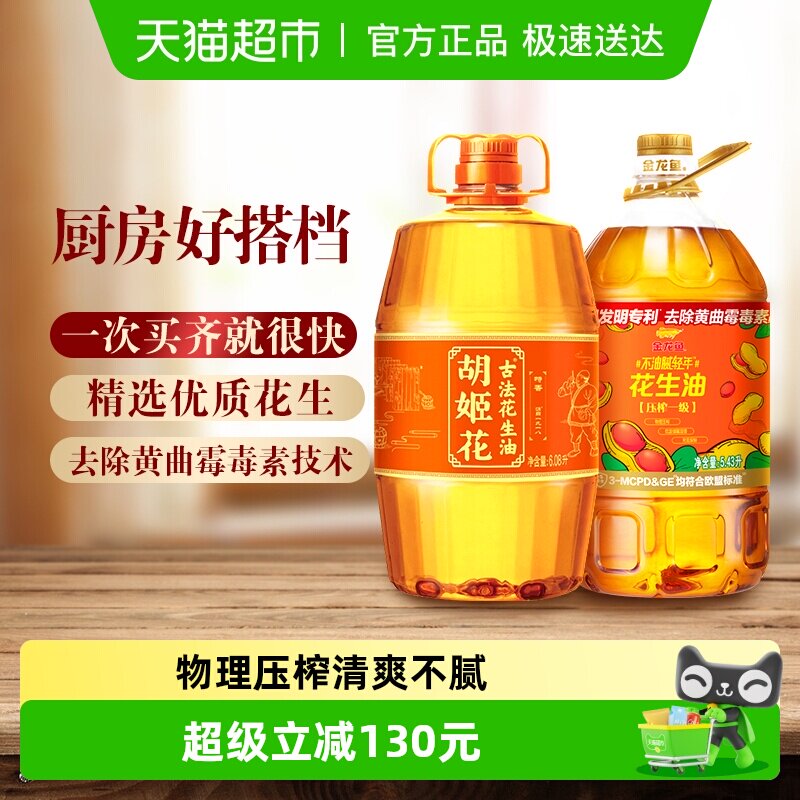 胡姬花古法花生油+金龙鱼不油腻花生油共11.51L*1组