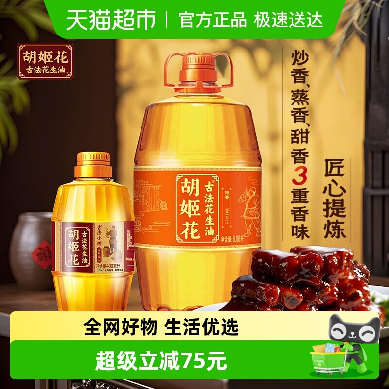 胡姬花古法花生油6.08L*1桶+古法小榨花生油400ml*1瓶