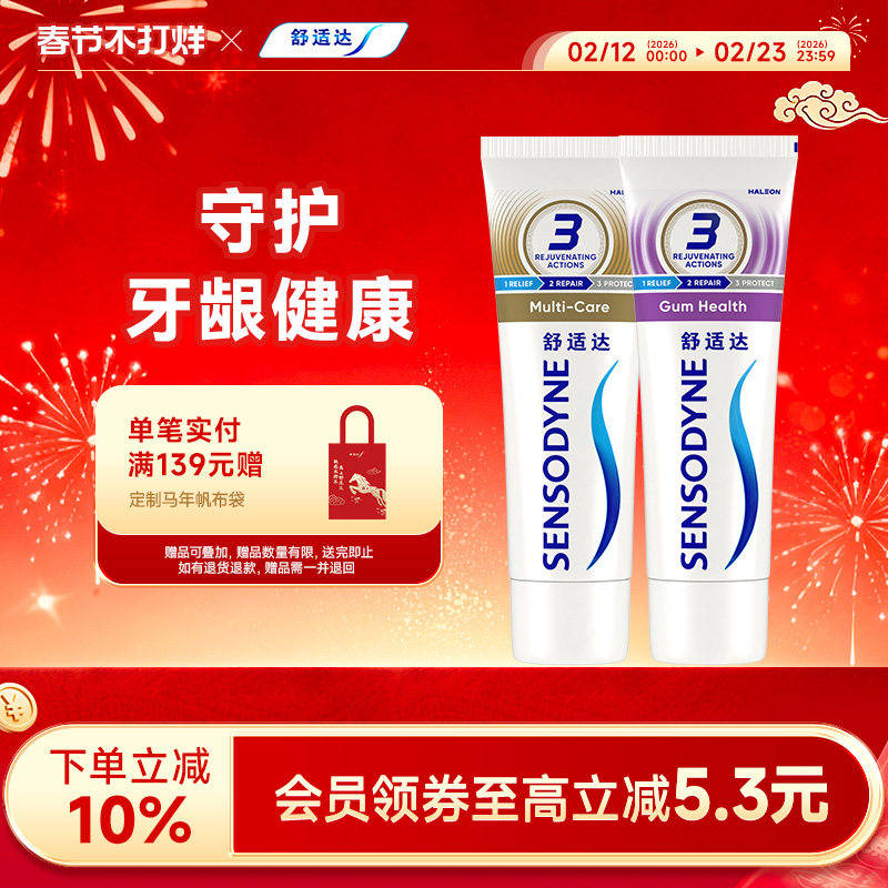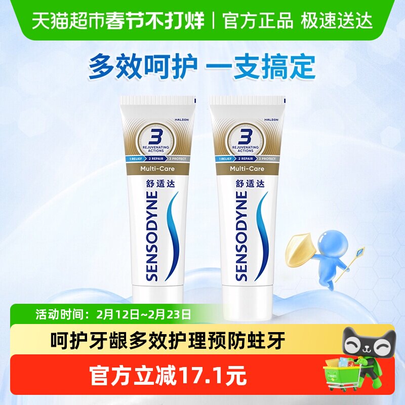 舒适达抗敏感牙膏牙龈多效护理100g*2支套装防蛀清新口气含氟清洁