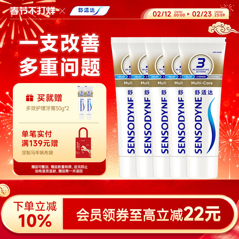 舒适达牙膏抗敏感多效护理100g*5支家庭套装防蛀清新口气清洁口腔