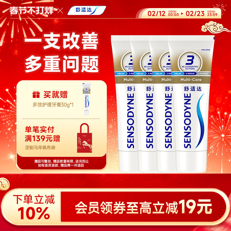 舒适达多效护理抗敏感牙膏含氟防蛀口腔清洁100g×3支+多效30gX1