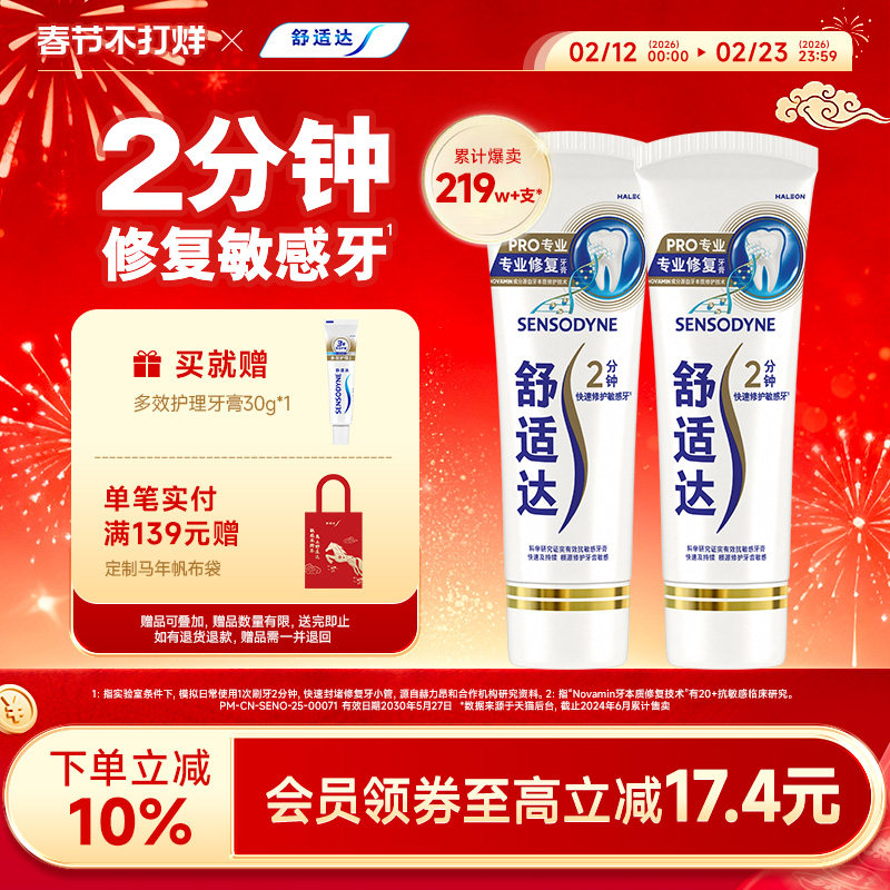 舒适达抗敏感专业修复牙膏90g*2 抗击牙敏感护齿含氟清洁官方正品