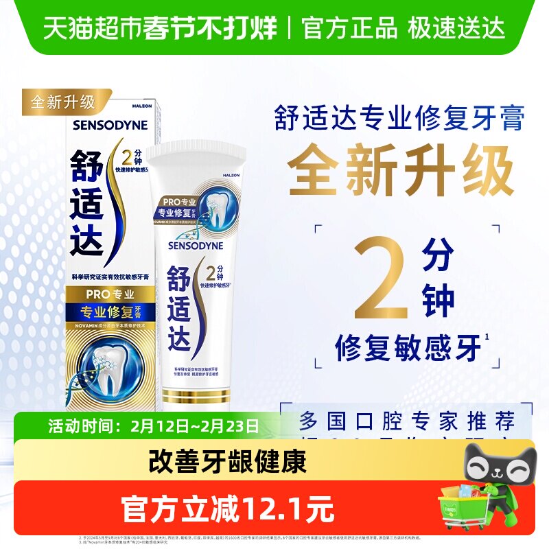 【下拉享优惠】舒适达抗敏感牙膏成人含氟专业修复Novamin技术正