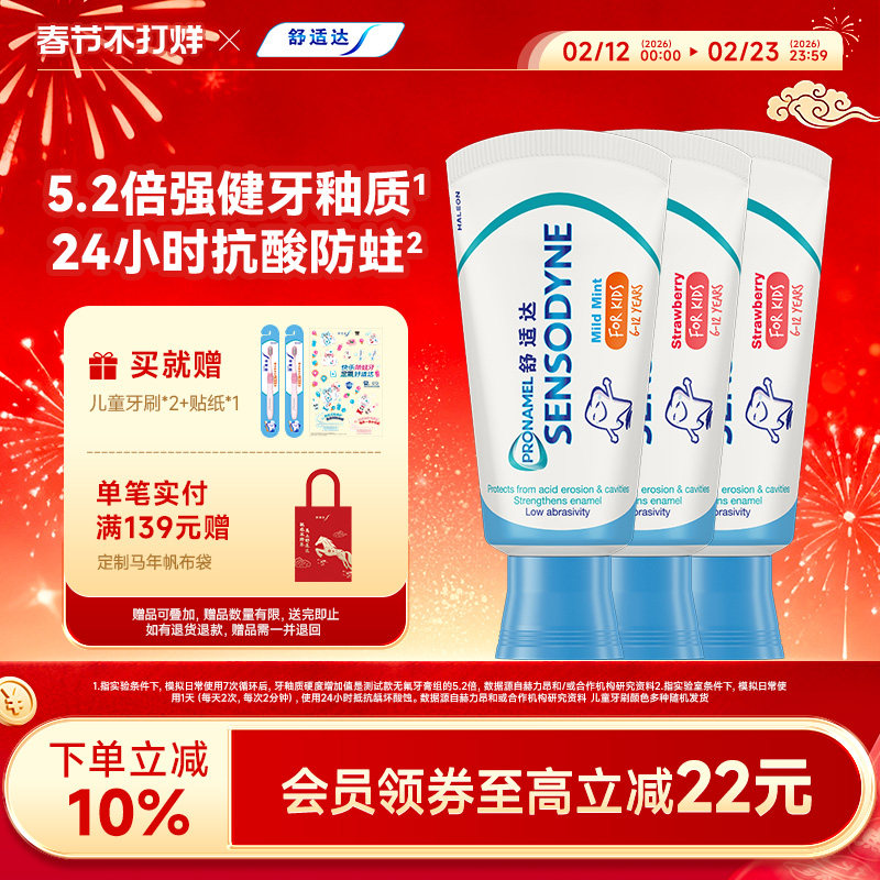 【年糕妈妈同款】舒适达护釉健乳牙换牙期儿童牙膏防蛀牙2-6-12岁