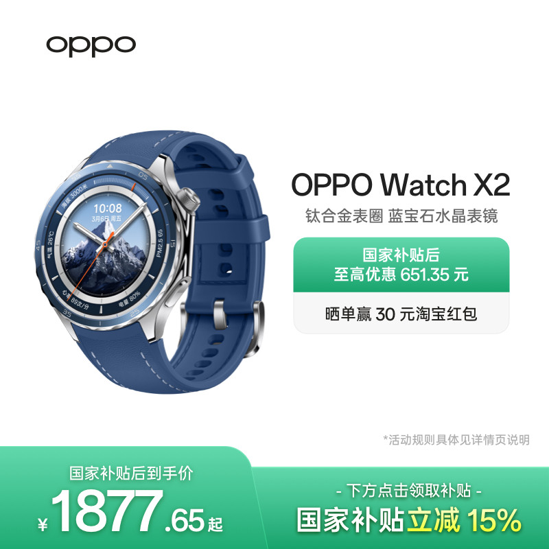 OPPO Watch X2 专业运动手表oppo智能手表政府补贴esim独立通信心率血氧oppo官方旗舰店正品