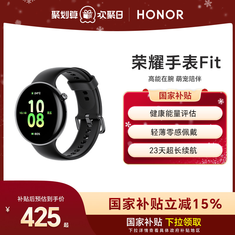【政府补贴15%】荣耀手表Fit 智能运动手表 健康评估 轻薄佩戴 长续航 官方新款正品 手机配对通话
