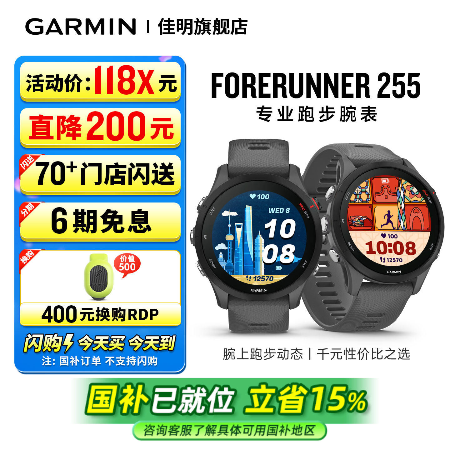 【补贴15%】Garmin佳明Forerunner255跑步手表马拉松越野骑行游泳徒步心率血氧睡眠双频多星GPS运动手环