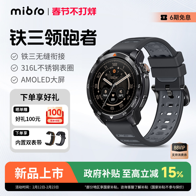 【政府补贴】Mibro铁三领跑者GS Pro2 铁三竞技运动手表智能户外跑步骑行游泳马拉松双频GPS心率监测