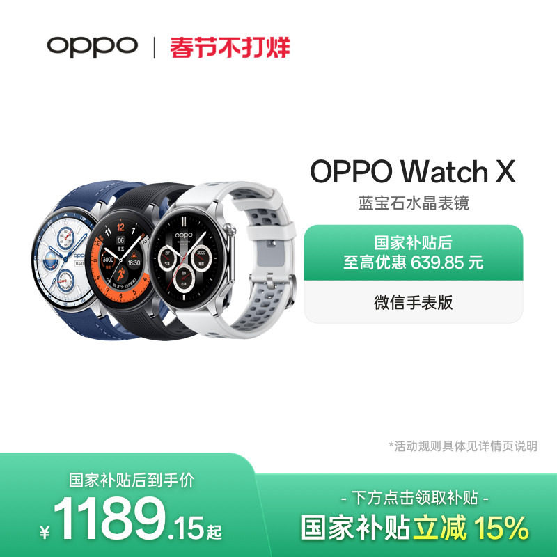 【政府补贴手表】OPPO Watch X 全智能手表esim独立通信专业运动手表健康心率血氧监测长续航防水