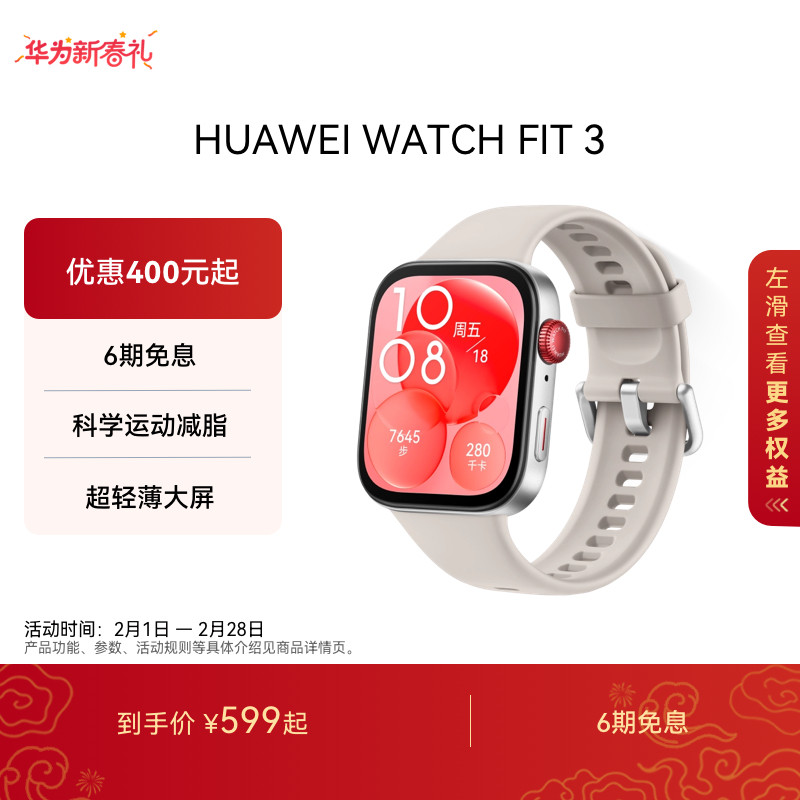【国家补贴 】华为WATCH FIT 3华为手表智能手表轻薄大屏运动减脂长续航蓝牙通话睡眠监测运动手表官方正品