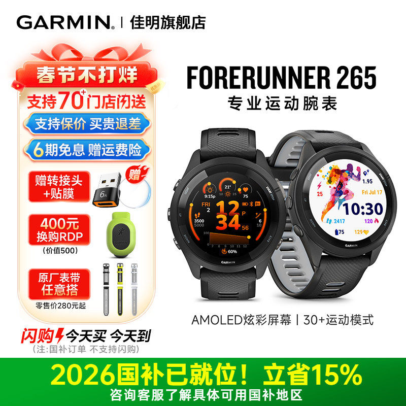 【补贴15%】Garmin佳明265运动手表跑步马拉松越野骑行游泳徒步心率血氧音乐nfc手环智能腕表