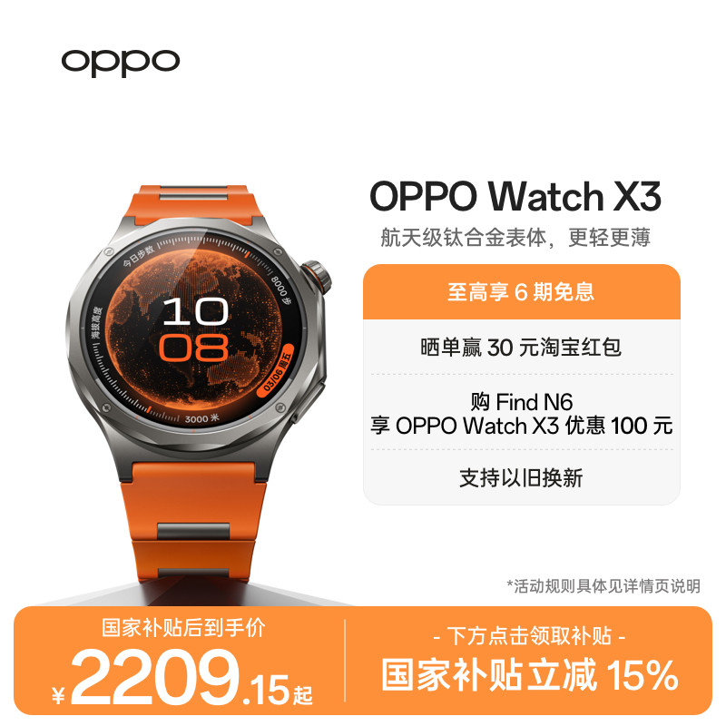 OPPO Watch X3 全智能手表政府补贴无感高血压风险评估航天级钛合金表体运动手表新品oppo手表官方