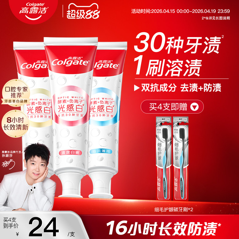 高露洁光感白美白牙膏成人去黄清新口气含氟负离子牙膏官方正品