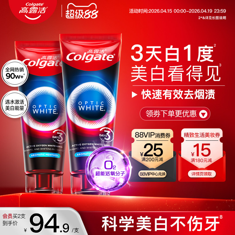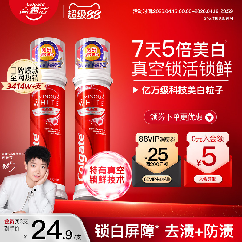 高露洁密集焕白牙膏美白牙齿清新口气清洁口腔结婚备婚红色一对