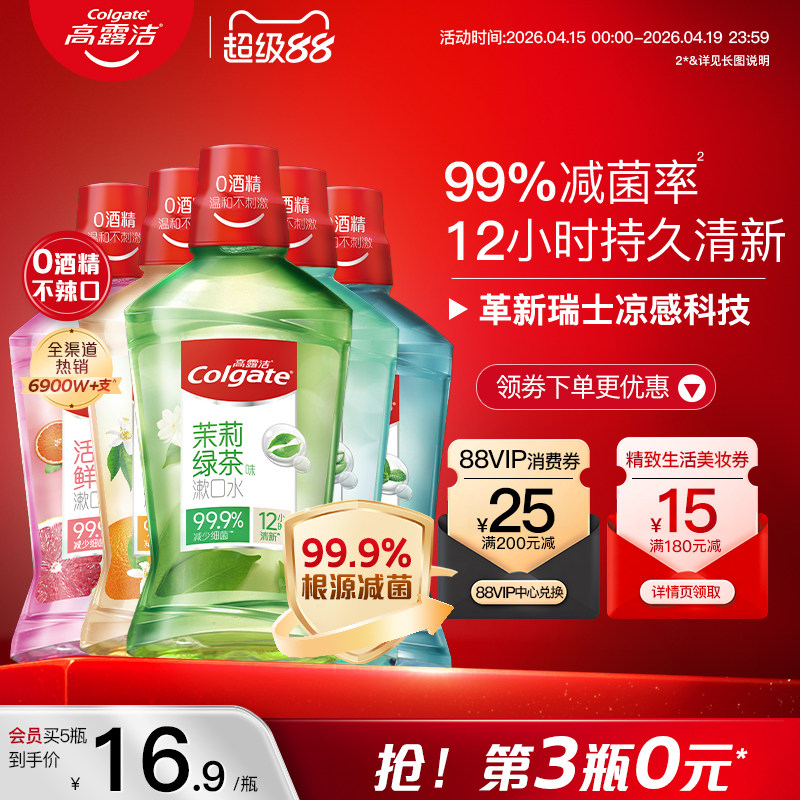 高露洁便携式漱口水绿茶薄荷精油清新口气减菌无酒精温和官方正品