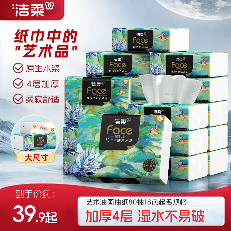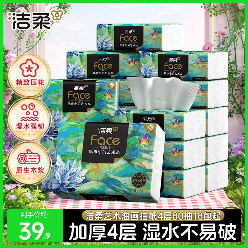 洁柔纸巾油画抽纸面巾纸擦手纸四层加厚艺术整箱实惠装餐巾纸家用