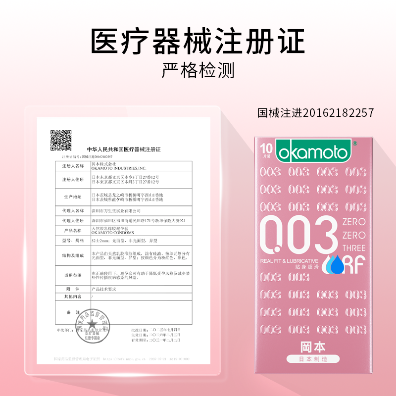 【囤货装】冈本粉金003丨正品超薄避孕套官方旗舰店超润男女byt