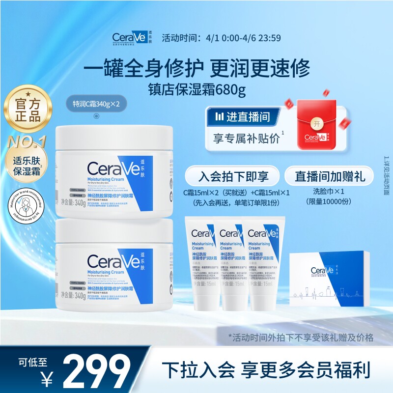 CeraVe适乐肤C霜男女润肤乳面霜滋润保湿补水套装正品张凌赫同款