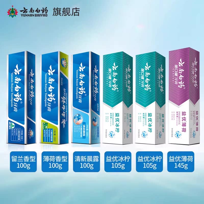 云南白药益生菌牙膏清新口气冰柠薄荷香型420g组合清爽牙膏