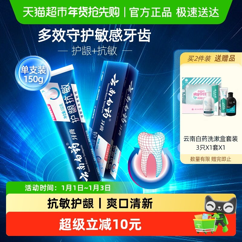 云南白药牙膏抗敏感水润薄荷缓解牙敏感口气清新护龈官方正品