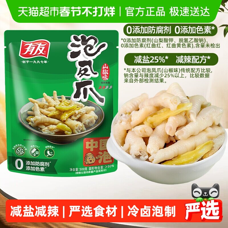 有友泡椒凤爪500g山椒鸡爪夜宵追剧休闲重庆特产年货纯肉零食礼包