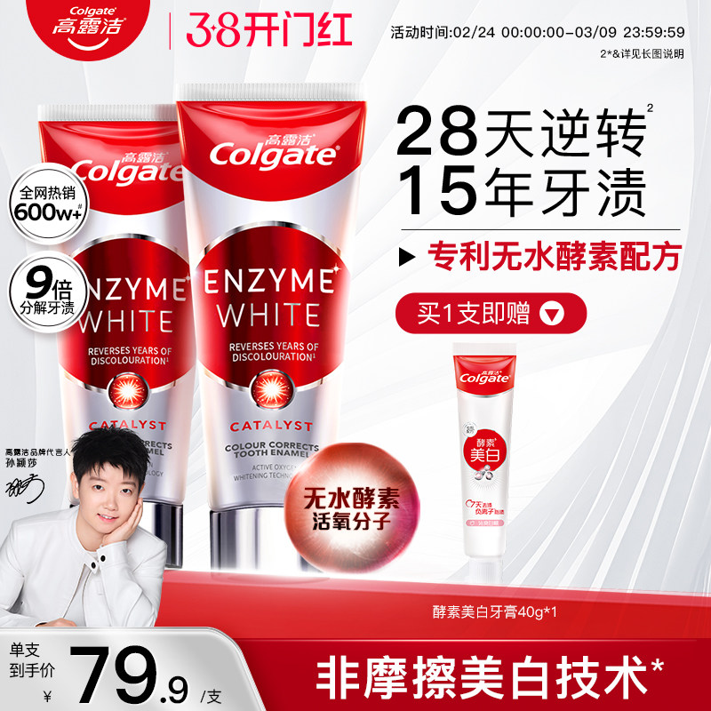 高露洁红管无水酵素牙膏美白去黄清新口气去烟渍成人旗舰店正品