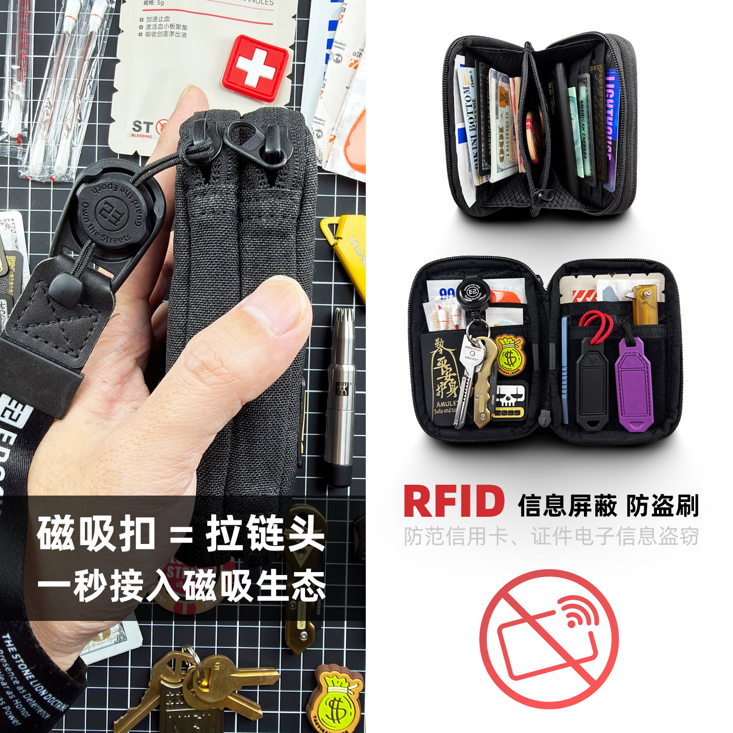 男士EDC收纳包军事风战术卡包RFID防盗刷钱包多卡位便携挂包