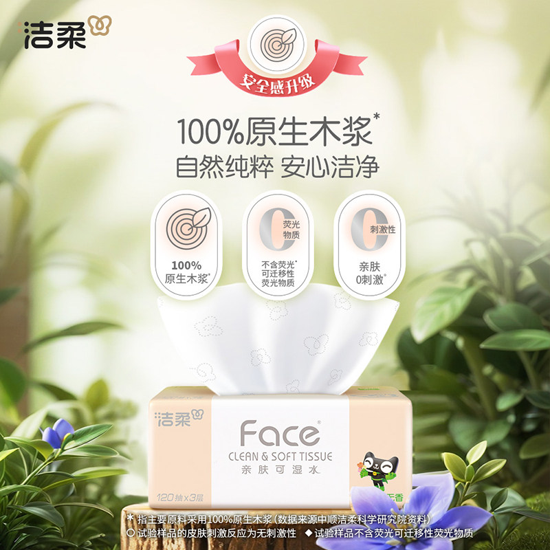 洁柔面巾纸Face大包多规格可湿水抽纸卫生纸整箱纸巾