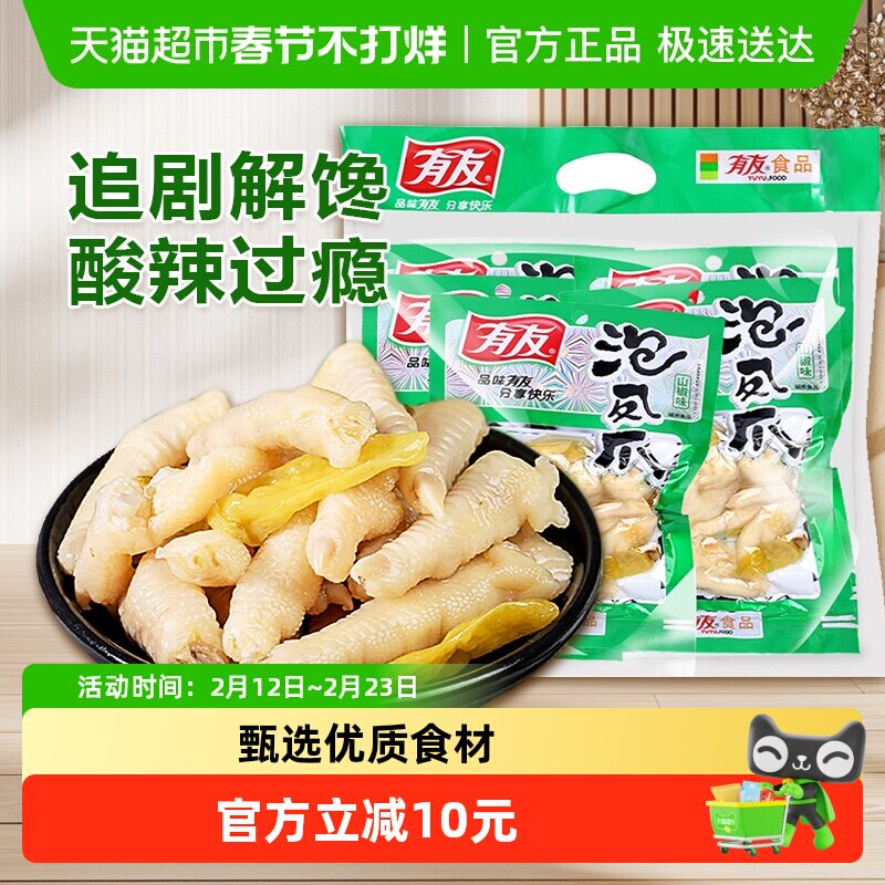 有友泡椒凤爪100g*5连包组合装鸡爪重庆特色小吃好货爆款休闲零食