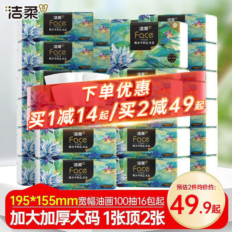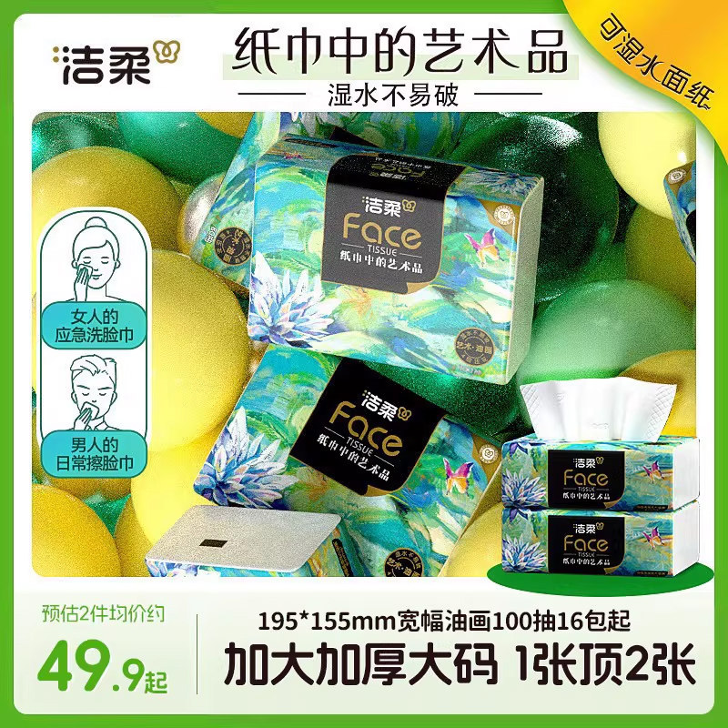 洁柔艺术油画抽纸纸巾大尺寸卫生纸餐巾纸宽幅家用擦手纸面巾纸
