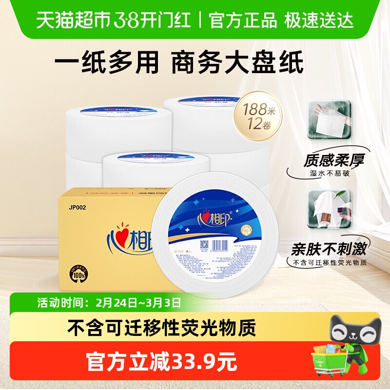 心相印珍宝纸商务系列3层188M*12卷纸巾卫生纸厕纸商用整箱实惠装