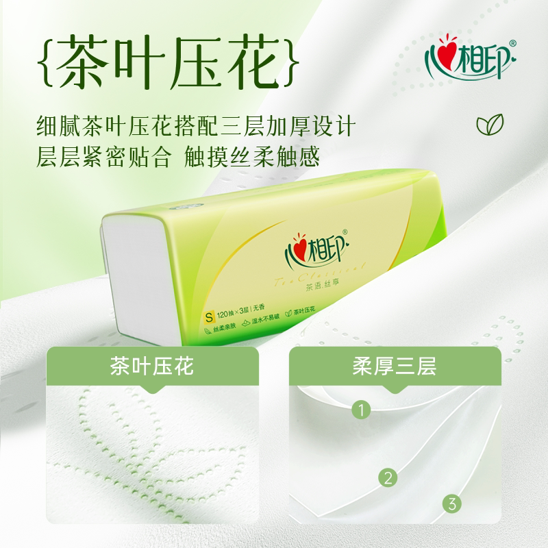 心相印抽纸茶语卫生纸餐巾纸家用实惠箱装纸巾120抽20包面巾纸巾