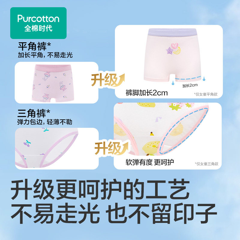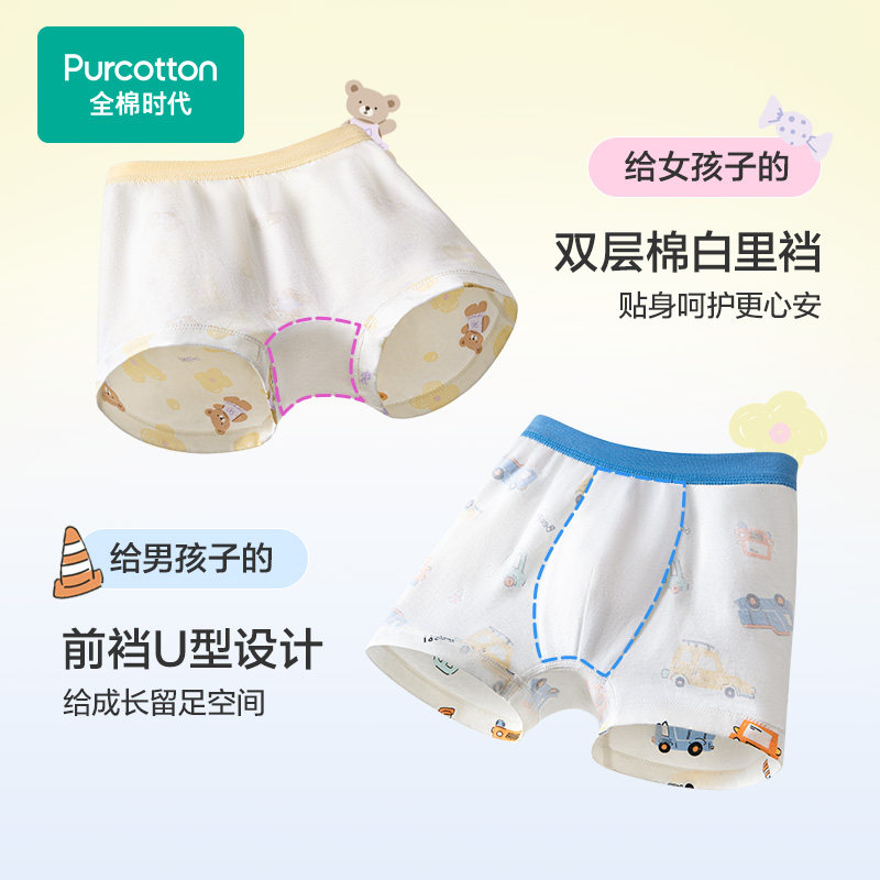 全棉时代中大男女童平角儿童内裤女孩全棉a类短裤100%纯棉 3条装