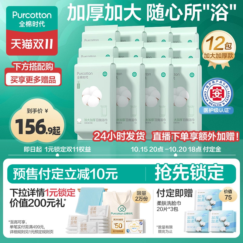 全棉时代一次性浴巾加大加厚纯棉压缩毛巾酒店旅行用品单独立包装
