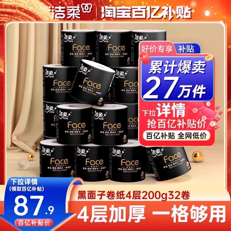 洁柔卷纸卫生纸纸巾200g共32卷卷筒纸厕纸4层加厚有芯家用实惠装