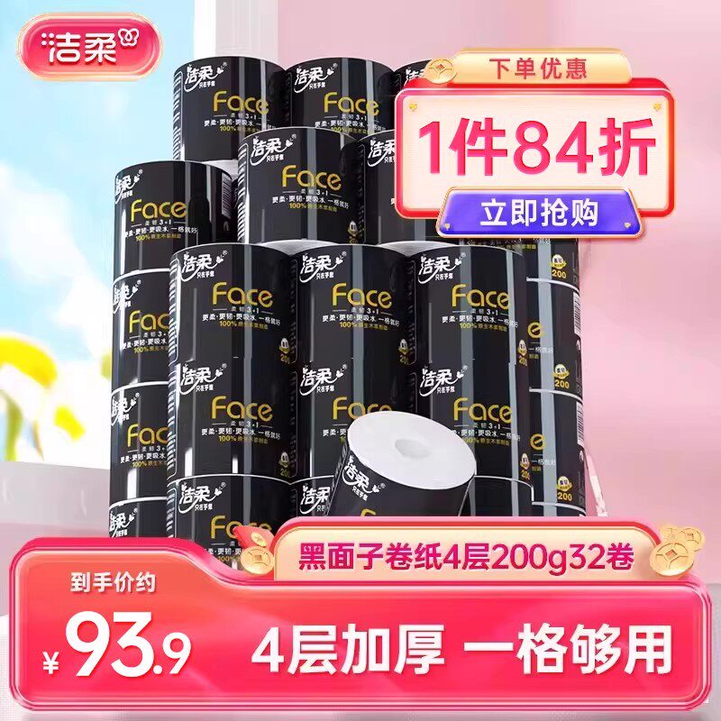 洁柔纸巾卷纸Face黑面子 4层加厚 卫生纸卷筒纸180g/卷*23卷整箱